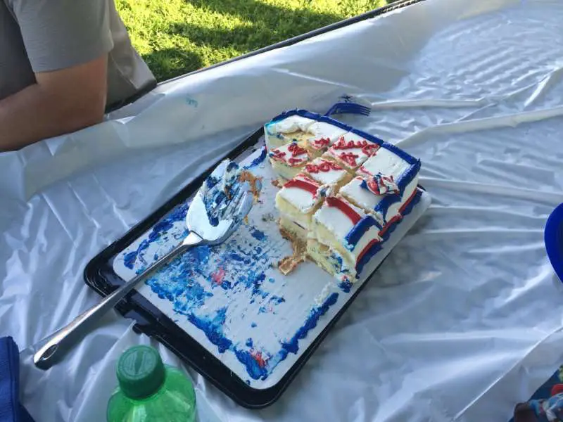 Les invités sont arrivés petit à petit à partir de 16h30. Une dizaine d’enfants étaient invités. Ils jouaient au parc (dans une grande aire de jeu avec toboggans, balançoires, …), venaient manger un bout, puis repartaient jouer. Ils se sont vraiment bien amusés ! Et nous, nous avons profité de ce moment pour rencontrer et discuter avec les amis et la famille de ma copine Stephanie et de son mari Greg. Nous avons passé un très bon moment et avons été très bien accueillis par tous ! Nous étions les seuls étrangers, tous étaient des américains originaires de Roseville et alentours.