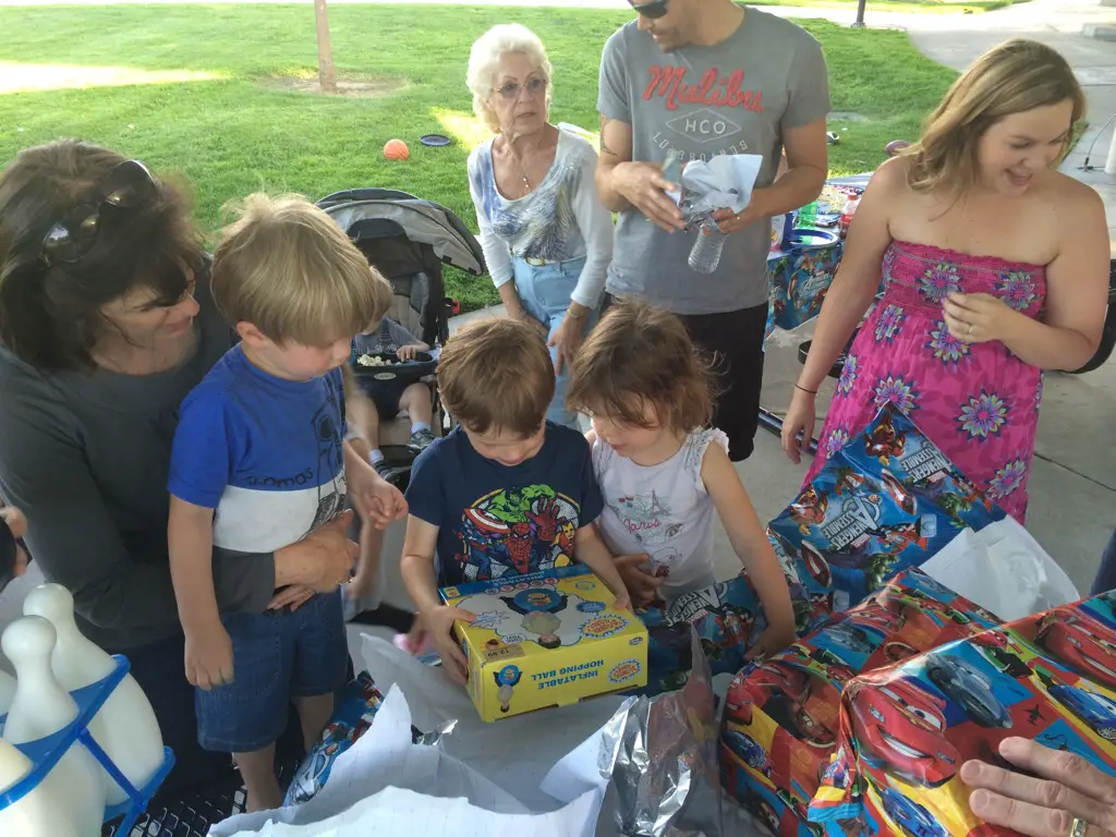 Et enfin, Everett a ouvert ses cadeaux. Et il a été très gâté ce petit bonhomme ! Skateboard, batterie, supers héros, jeu de bowling, et j’en passe.