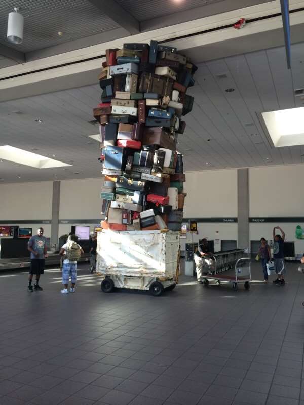 Je voulais vous parler de cet aéroport car nous avons attéri à Sacramento pour rentrer de notre séjour en France. Lorsqu’on a été récupérer nos bagages, il y a une super statue. Je l’ai trouvée vraiment chouette et originale !!!