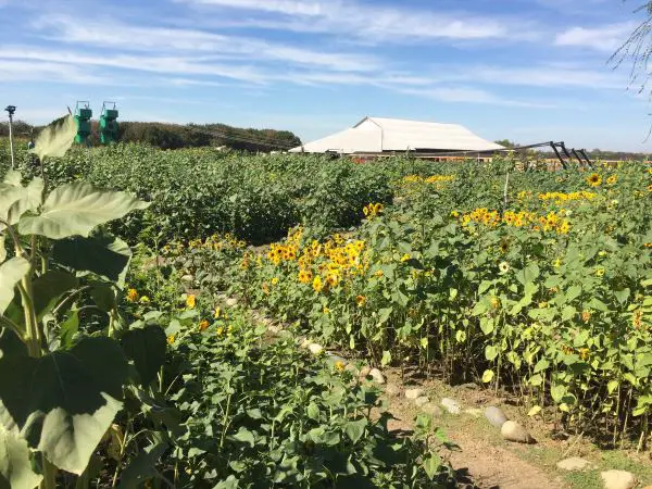 Nous sommes arrivés vers 10h et le parking était déjà bien rempli. Ça nous a surpris en ce jour de semaine. L’entrée dans cette ferme de citrouilles était gratuite, mais les activités payantes.