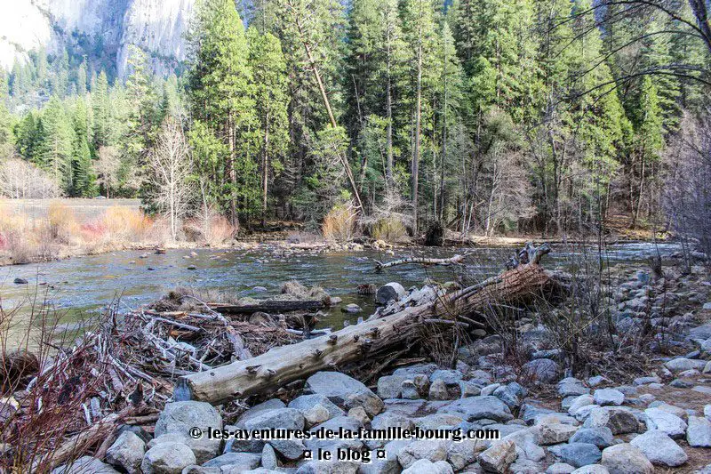 Après notre randonnée en bas des Yosemite Falls, nous roulons pour finir de découvrir Yosemite Valley pendant que nos filles font une grosse sieste ! La balade les a épuisées.