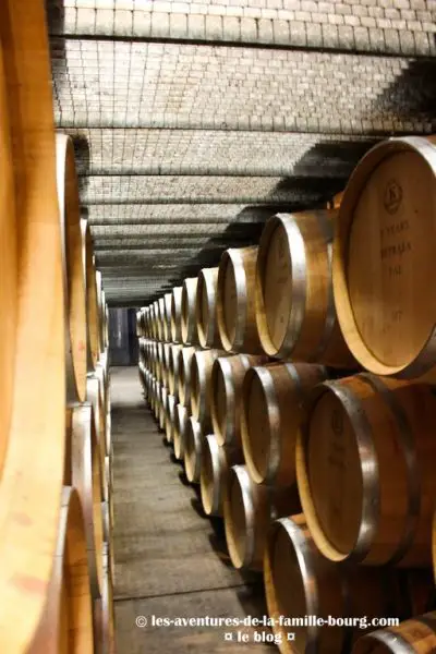 La salle de dégustation est plutôt petite. Nous découvrons les lieux et la salle adjointe avec tous ses barils.