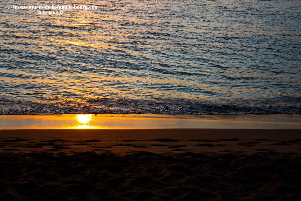 Puis, pendant que mon mari jouait avec les filles dans la piscine, j’ai été faire des photos du coucher de soleil. Cette fois-ci, j’ai utilisé le jardin de l’hôtel et la plage pour jouer avec le soleil.