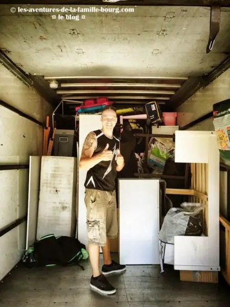 Certains amenaient les meubles devant le camion, d’autres faisaient le Tetris pour le remplir de manière optimale et certaines ont commencé à faire du ménage dans la maison. Les enfants ont aussi aidé à leur façon en portant les cartons légers.