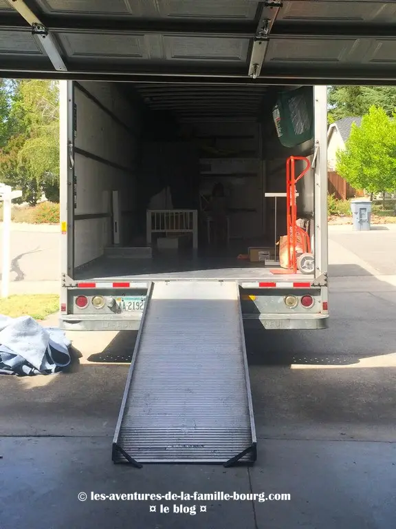 Via le site U-Haul, j’avais réservé un camion quelques jours plus tôt. Nous avons eu un Camion 24 pied et au final nous l’avons rempli ! C’est qu’on en accumule des choses en 20 mois et même après notre Garage Sale, on avait beaucoup d’affaires à déménager !