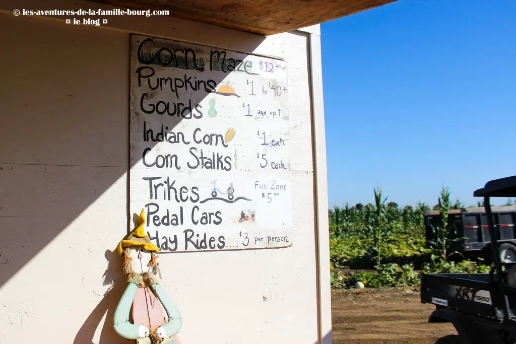 Après nous être garés sur le parking, nous marchons en direction du centre de ce pumpkin patch pour acheter les tickets pour le labyrinthe de maïs.