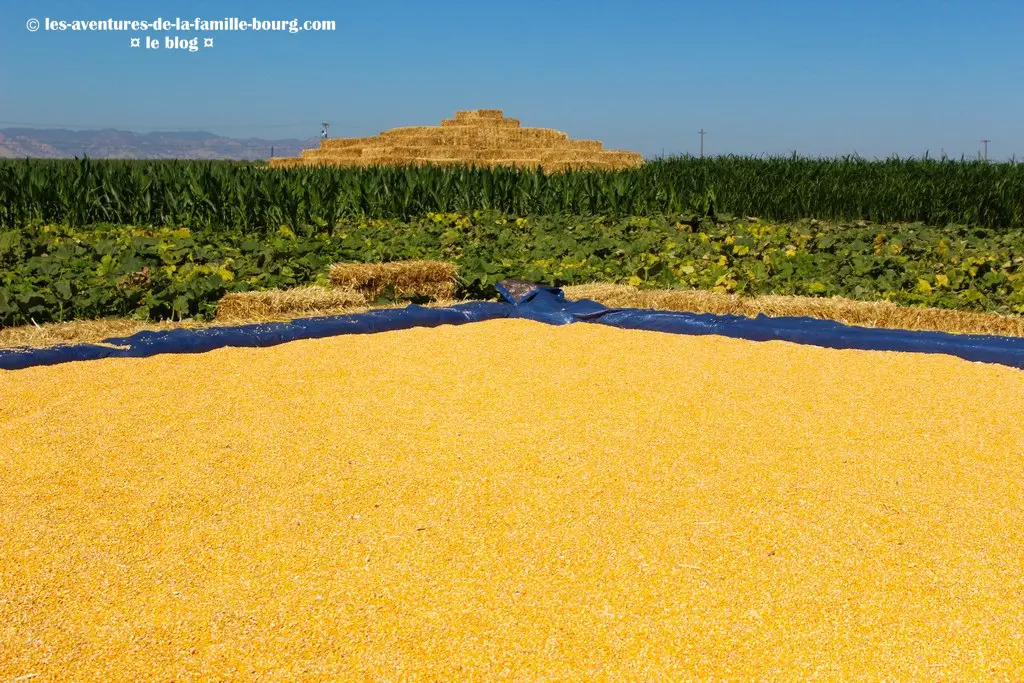 Sur le chemin, on est entourés de maïs et de plants de citrouilles.